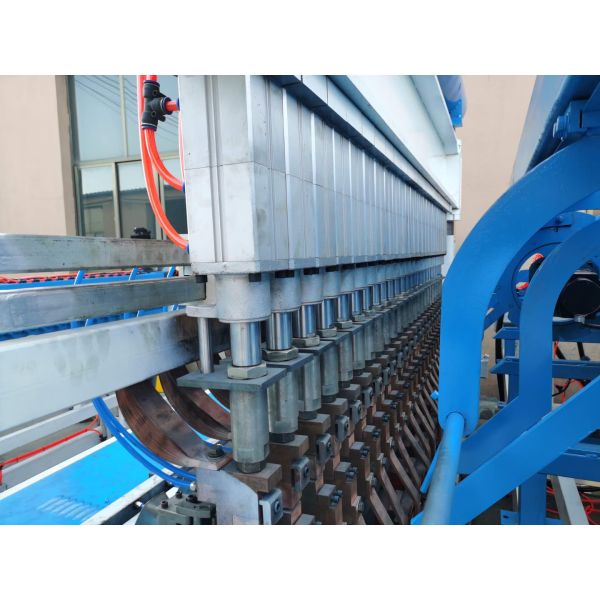 4.Mesh pulling mechanism: Mitsubishi servo motor supporting planetary reducer drives pneumatic clamping mesh pulling device to ensure the stability of the system and the standard size of the welded mesh.Automatic reciprocating mesh drawing can realize the production of lengthening size mesh.